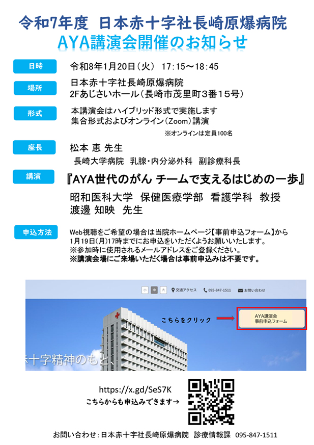 1月20日(火)にAYA講演会を開催します。